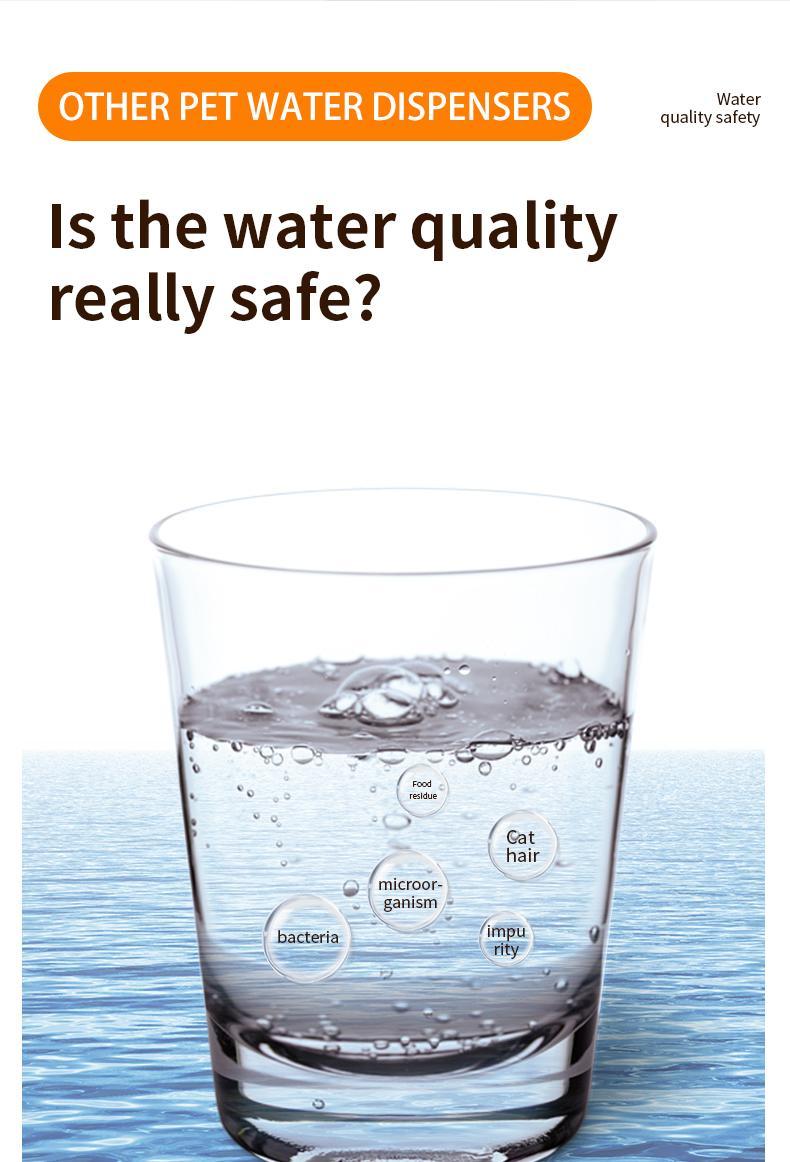 Made with food-grade stainless steel, this fountain is easy to disassemble, clean, and maintain, ensuring a hygienic water source. Additional features include ultra-quiet operation, low-water level protection, and a waterproof charging port for safe use.